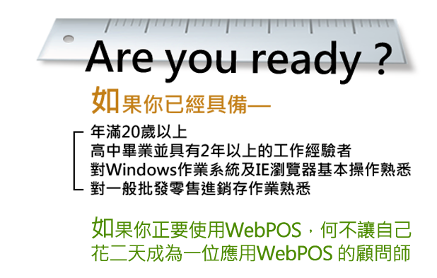 WebPOS+WebKIOSK系統是零售產業未來的趨勢,因此關於WebPOS+WebKIOSK系統相關的服務將具有潛在商機,風華相當歡迎你加入零售服務業雲端運用顧問師行列。 凡對Windows與IE瀏覽器基本操作熟悉者,對零售服務業具基本概念或你本身即為零售業主管者。