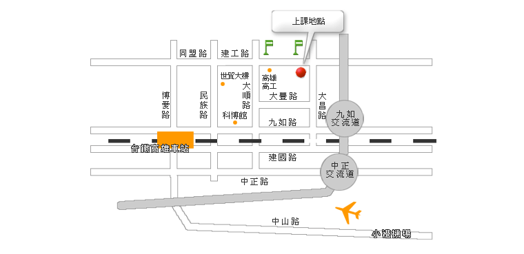路線二:下中正交流道往高雄市區方向→中正路→至大順路(右轉)→至建工路(右轉)。