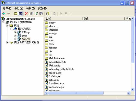 l ¶i¤JIIS¡AÂIÀ»¨ºÓ¹w³]ºô¯¸«eªº「¡Ï」¡A¦p¤U¹Ï¡A¦AÂI「WebPOS」«ö¥kÁä¡A¤U©Ô¤@±i¥\¯àªí¡A¿ï「¤º®e」§Y¥i¶i¤J³]©w¡C