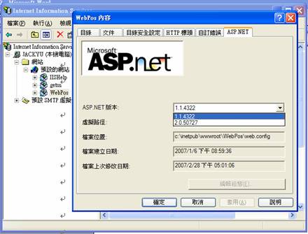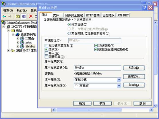 ¶i¤JWebPOSªºIIS³]©wªº¤º®e¦p¤U¹Ï¡A¦AÂI¤W±¸ê®Æ§¨ªºASP.NET