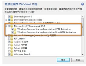 解決方法: 進入控制台中的開啟或關閉Windows功能中,確實將「Microsoft .NET Framework3.5.1」打勾。