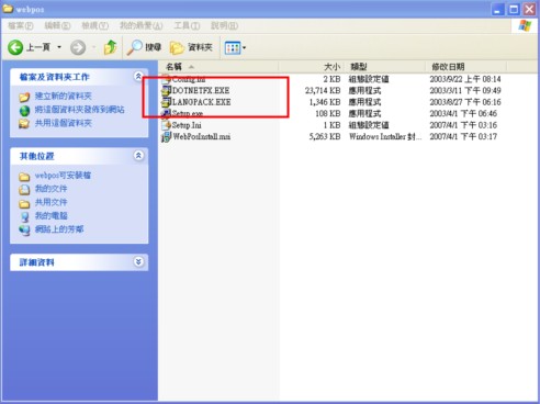 - 從你下載的webpos解壓縮目錄裡,如圖4 分別點選DOTNETFX.EXE及LANGPACK.EXE,如圖5、點「我同意」,選安裝,即可安裝好,再點選 LANGPACK.EXE,安裝好。