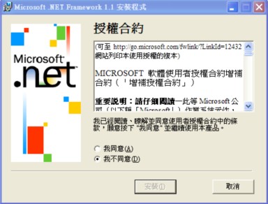 如果看到以下畫面,表示在安裝過程裡,有一個微軟的.net Framewrok沒安裝好,你可以重裝,其方法與順序如下: