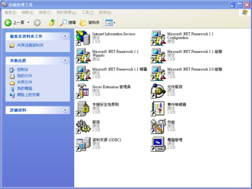 - 進入圖7,選Internet Information Services,即IIS管理。 圖7、系統管理工具