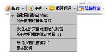 2. 在「Yahoo!奇摩捷徑列」中,找出按鈕的下拉清單中有「啟動阻擋跳窗功能」的按鈕。