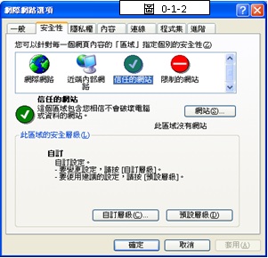 Step2. 進入下圖 0-1-2 選擇安全性,並且點選信任的網站。